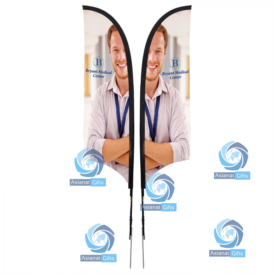 Announce your location with brightly colored banners that flutter in the breeze. Features high quality, full color dye-sublimated imprint.Printed on two sides, image correct on both sides.Includes a spike base for outdoor use. Flag poles are constructed of a strong but flexible carbon composite material. Kit includes hardware, double-sided banner, spike base and soft carry case.