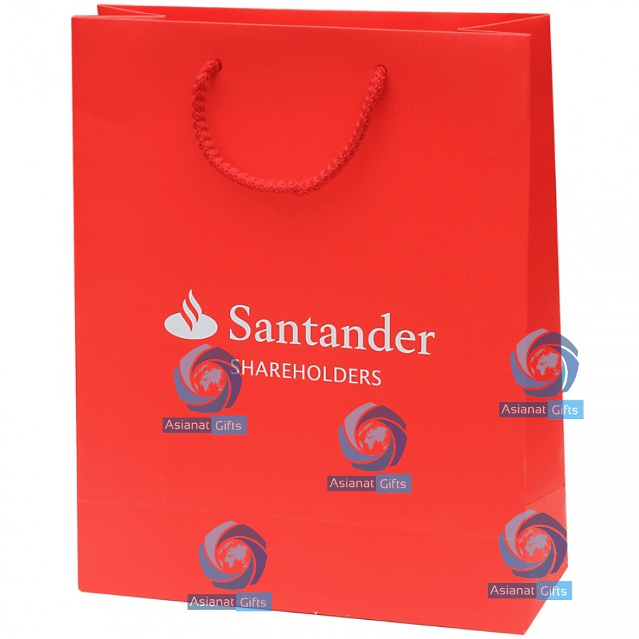 190gsm Laminated Gloss Art paper bags with reinforced base and PP rope handles - same full colour design on 2 sides. Matt and thicker paper, thicker and longer handles and additional trims available at additional cost.