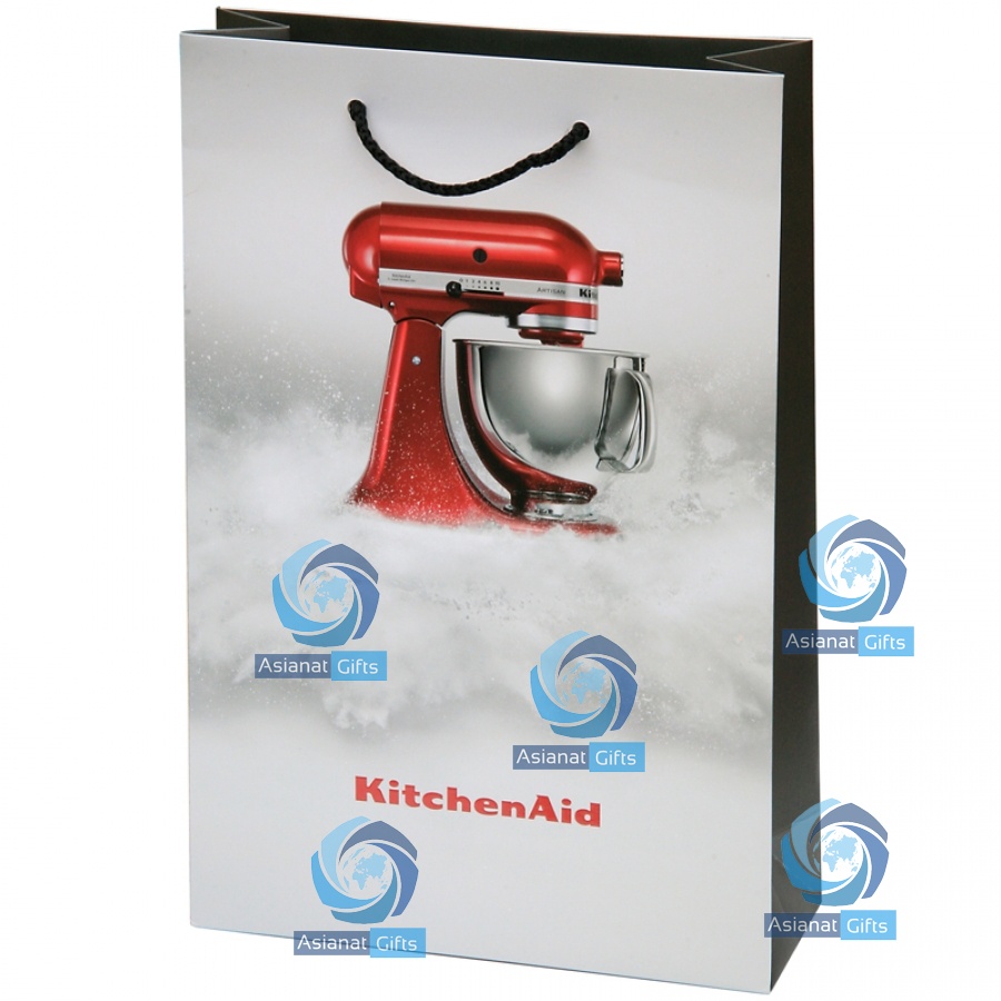 190gsm Laminated Gloss Art paper bags with reinforced base and PP rope handles - printed full colour. Matt finish thicker paper, thicker and longer handles and additional trims available at additional cost.