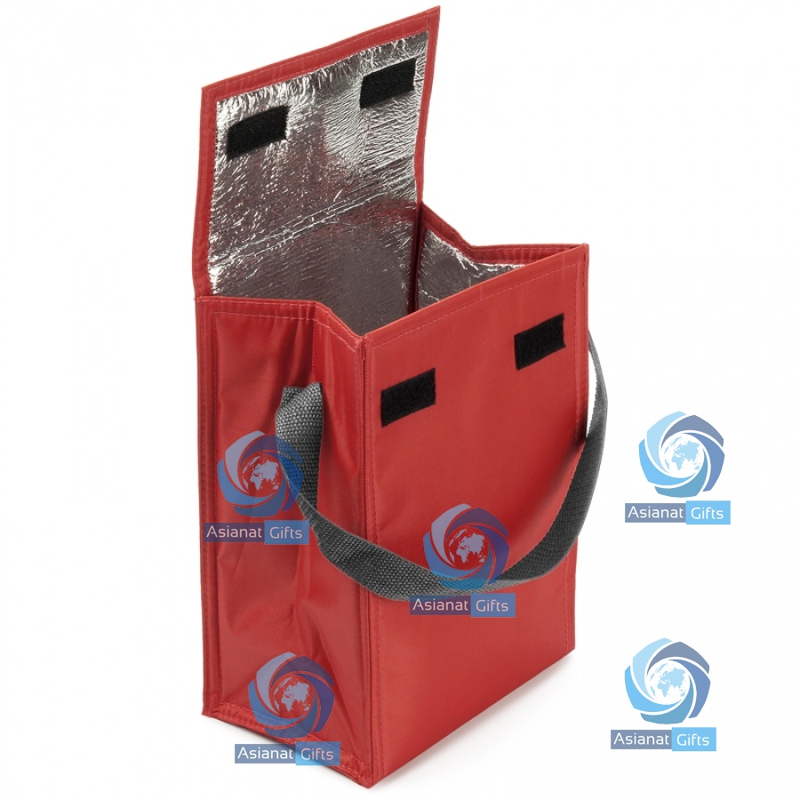 Polyester (420D) cooler/lunch bag with Velcro closing and carry strap.