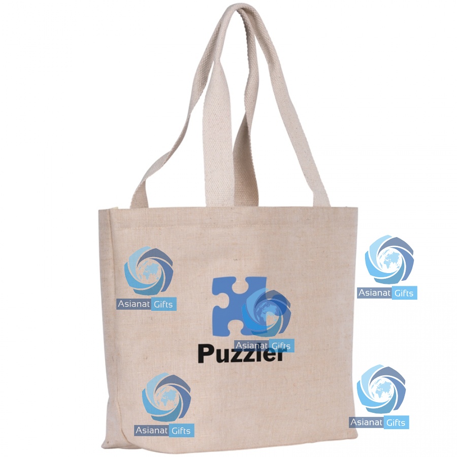 Environmentally friendly, tote bag made from Juco (cotton/jute weave) with L.D.P.E backing. Features cotton webbing handles.