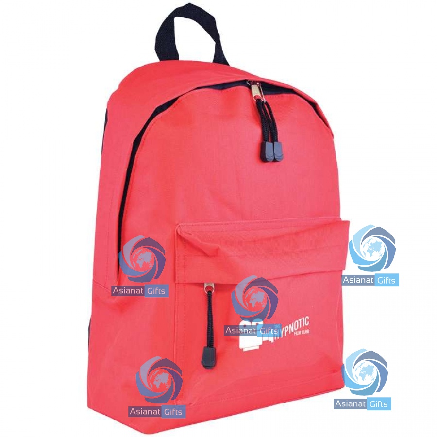 Budget 600D polyester backpack with small front pocket.