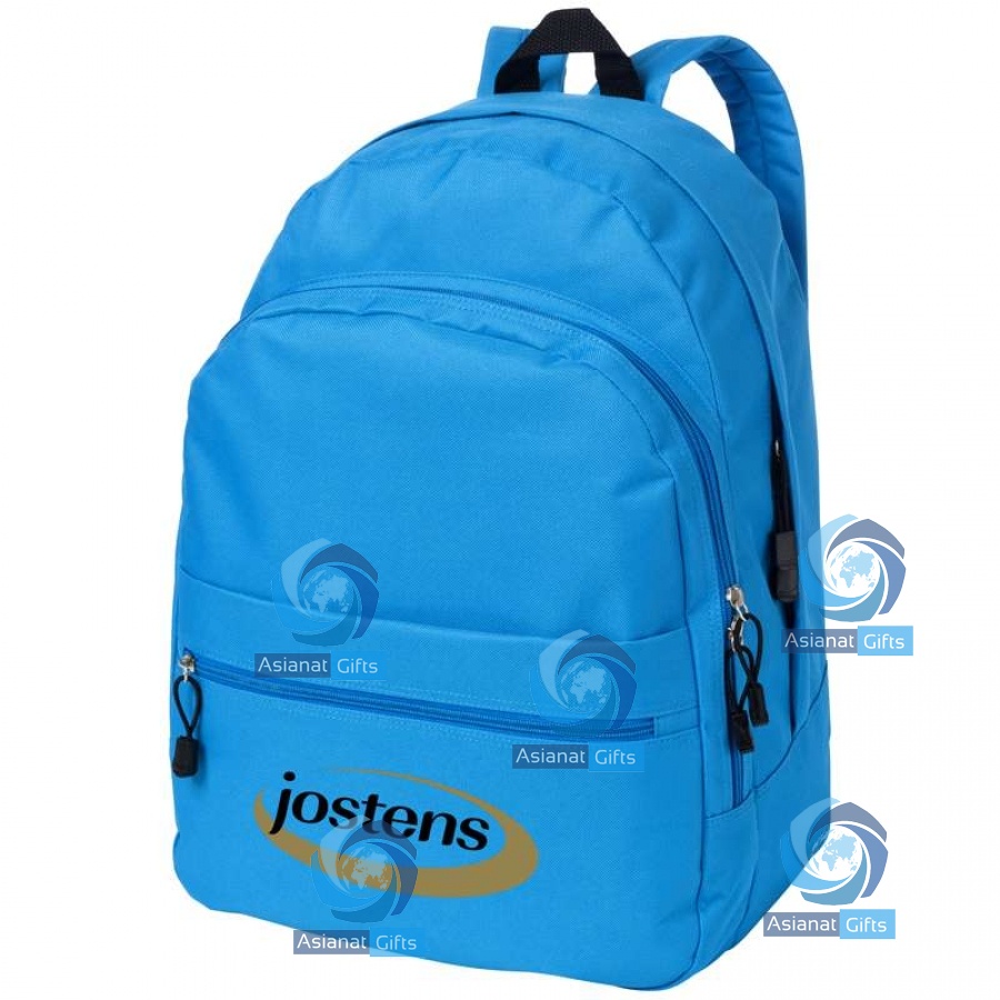 Comfortable trendy backpack with 2 adjustable shoulder straps, 2 zipper compartments, front zipper pocket and front pocket with velcro closure. 600D polyester.