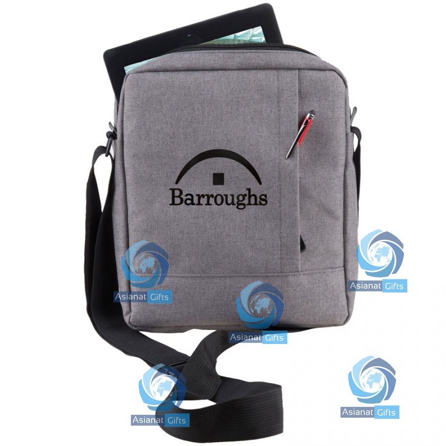 Vertical messenger design for tablet 10”. Bag is completely padded, fully equipped interior with padded compartment and multi-organiser pockets and mesh pocket and zipped pocket for small accessories.