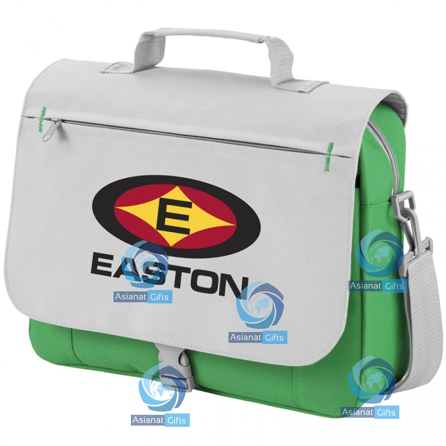 With adjustable shoulder strap, padded handle, front zipper pocket, main zippered compartment and organiser section under flap. 600D polyester/300D polyester.