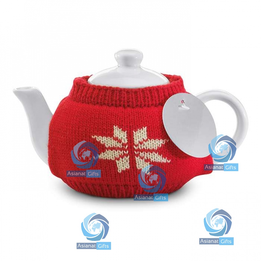 Ceramic teapot covered by Nordic design jersey.Round, Porcelain, D Handle, Pour Spout, Hold Tea, Removable Lid. Includes a stainless steel tea filter, presented in white box.
