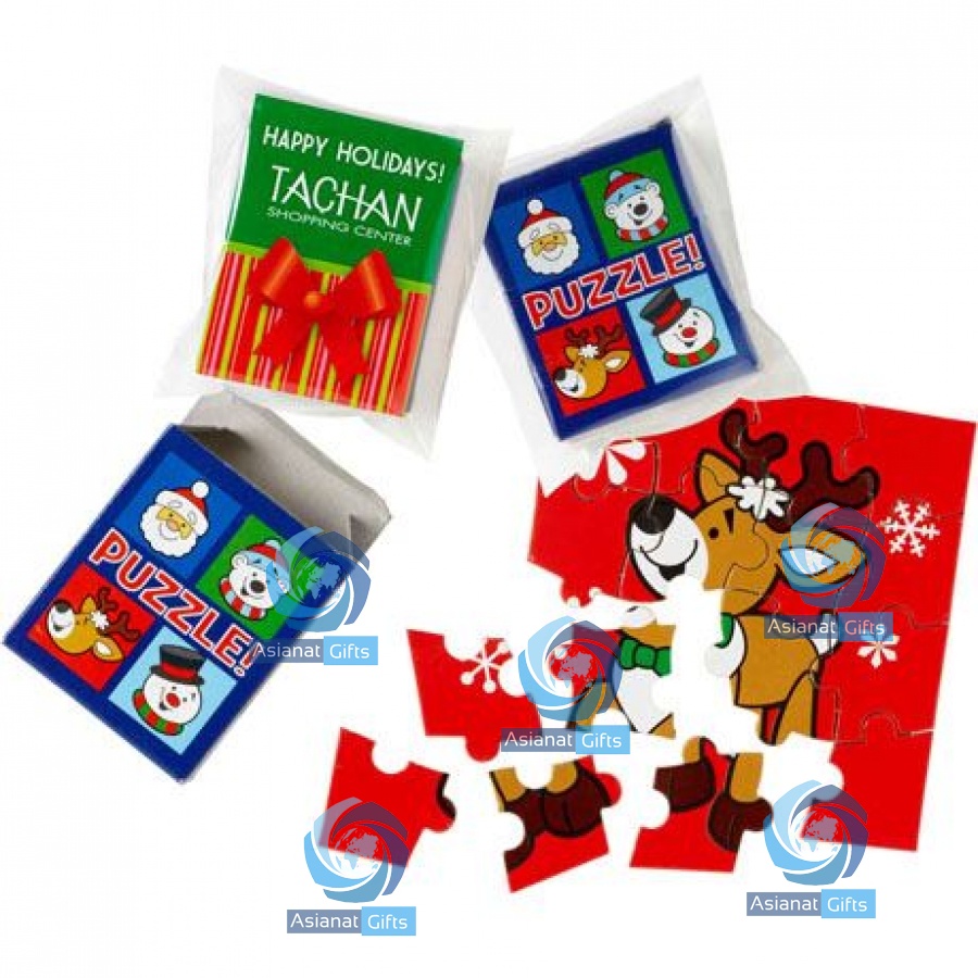 Enjoy some Christmas cheer with this themed jigsaw puzzle! Sixteen piece puzzle comes in a stock box and is polybagged with a card with your imprint.