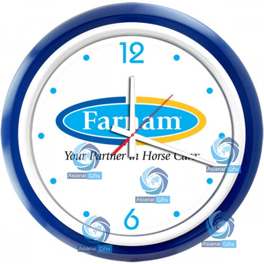 Promote your brand 24/7. Customize your clock by choosing from various sizes, cases, and colors. All clocks include a full color high resolution imprint. Great for restaurants, bars, banks, hotels, schools, dealerships, offices, and retail. Clocks come packaged in white gift box. Individual shipping boxes are available. Battery powered clock movement. Constructed with glass lens and heavy-duty plastic case.Includes full color high res imprint. Clock comes packaged in an individual shipping box. 22" Diameter x 2.75" D