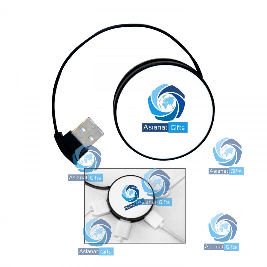 Connect up to 4 devices using 1 USB port with this unique and compact item. Works with all smart phones, tablets, computers and more! Cable seamlessly wraps around hub when not in use, making storage and traveling with this a breeze. Input: 5V 500mAh/Output: 5V 500mAh. Contains an intelligent IC chip for full protection of overcharging, over discharging, overloading, short circuit and high temperature protection. 2" Diameter x 3/4" H