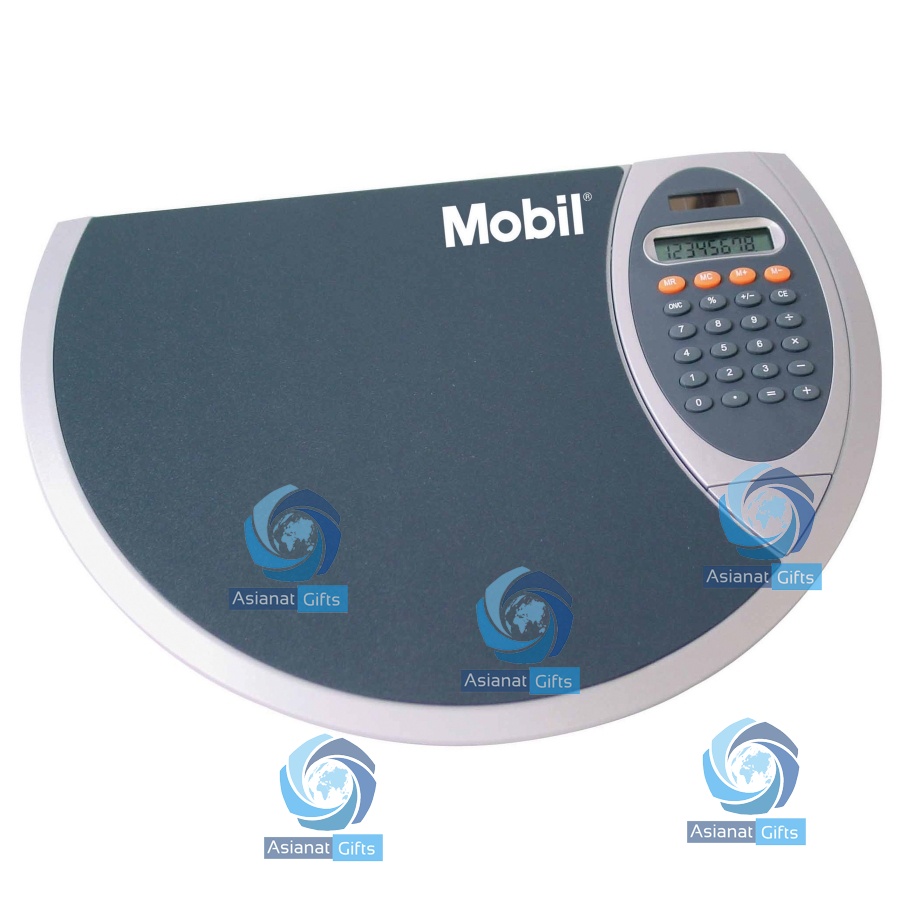 Mouse Pad with Detachable Calculator. Dual power 8-digit solar calculator detaches from mouse pad. Uses one button battery (included). 10 1/4" W x 7 1/2" L x 1/2" D