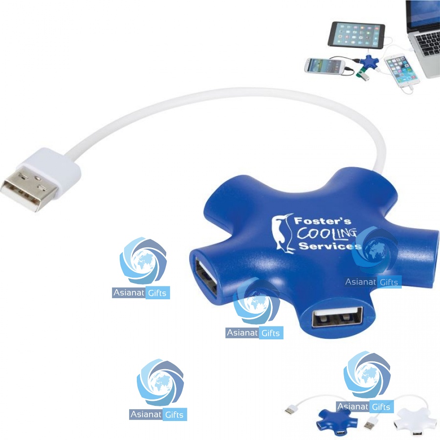 The Star USB Hub is a 4-port 2.0 USB hub that is compatible with any USB port. USB cord extends 7-1/4". Media device not included. Comes individually gift boxed.