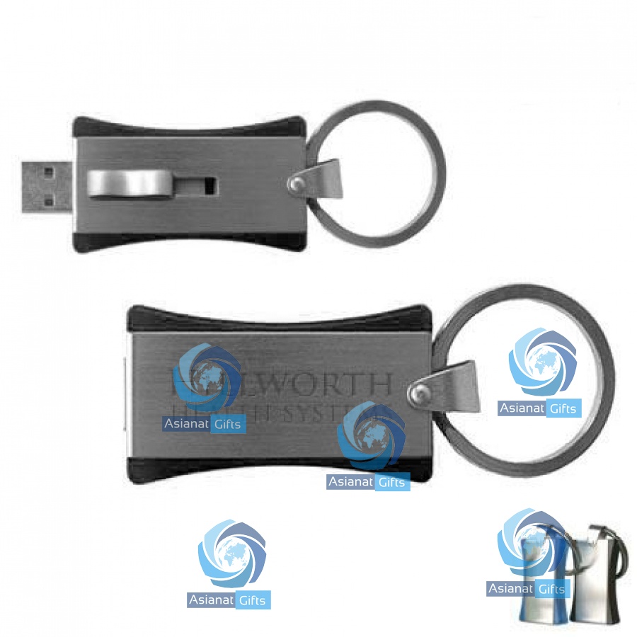 This aluminum and plastic USB features a retractable USB port, and a keyring to attach your drive to keys or a work bag. Various memory capacities are available.