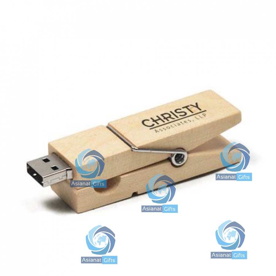 Wood clothespin shaped USB flash drive is a fun and unique shape. Comes packaged in a white gift box.