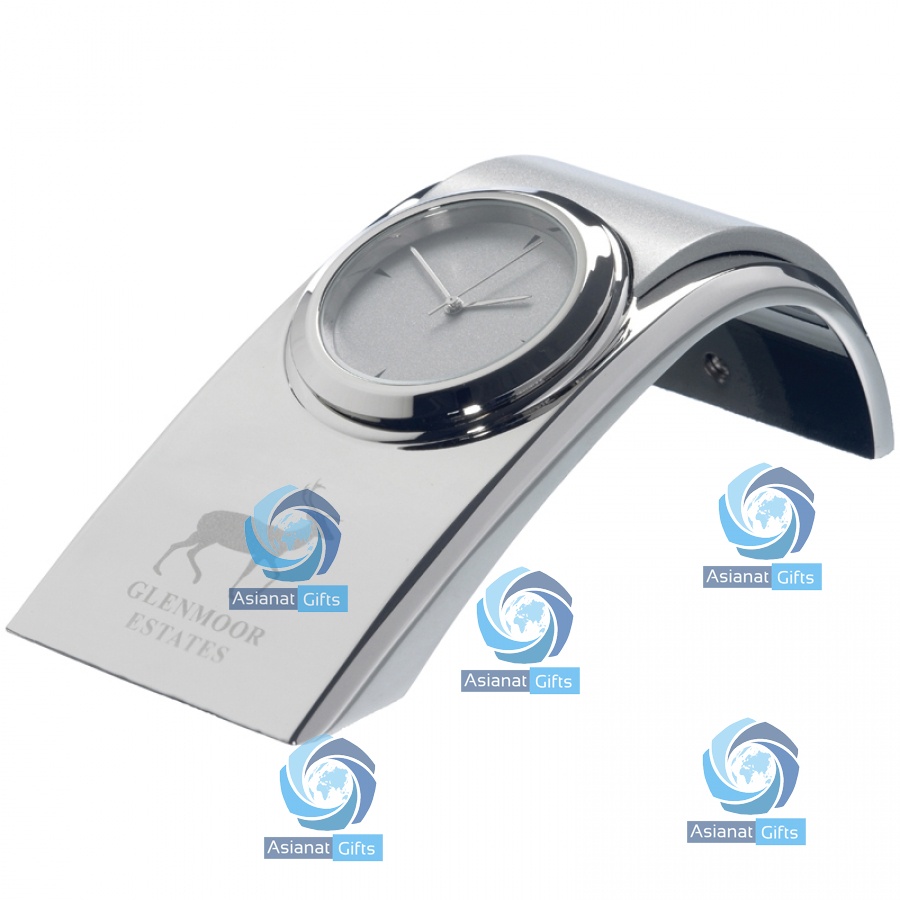 Shiny and matt nickel plated clock with quartz analogue movement. Matching card holder and paper tray also available individually or as a set.
