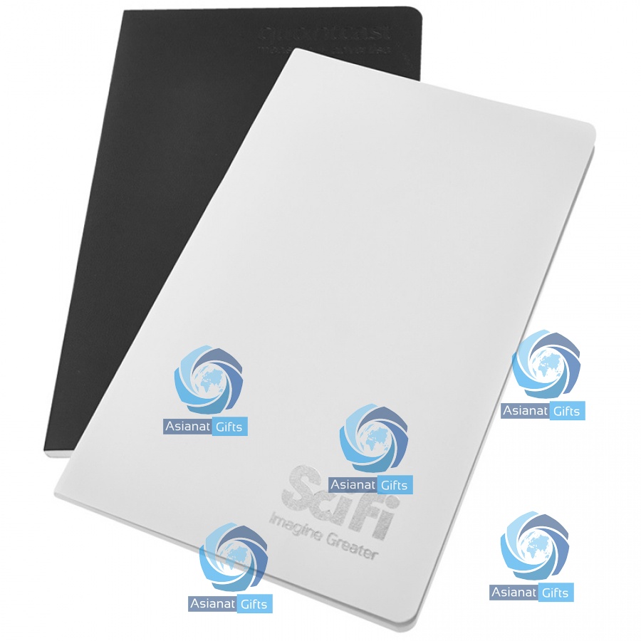 Large journal covered in hard wearing synthetic material. Debossed or foil blocked on the front cover. Soft backed, slim book with 96 lined pages, last 16 pages detachable.