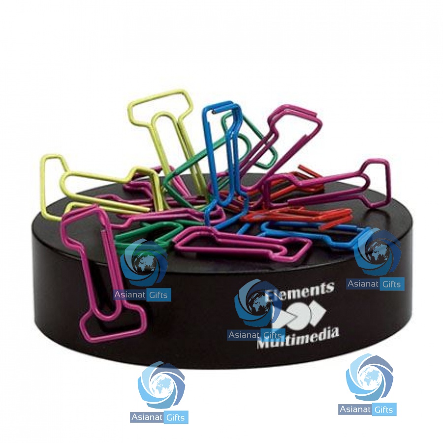 This unique desktop item includes 20 #1 shaped paper clips and a black magnetic base that doubles as a paper weight. The paper clips can be sculpted and stacked for stress relieving fun.
