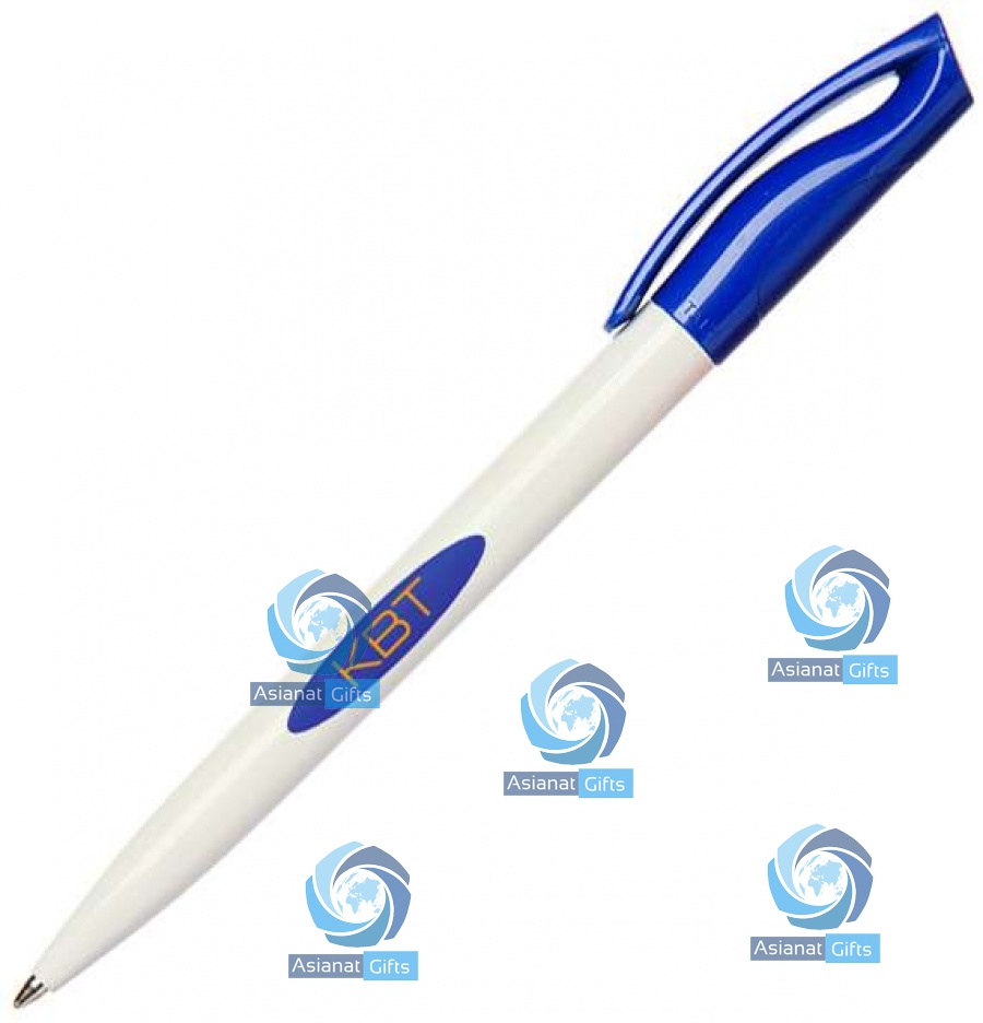 Twist action pen with large print area on barrel and clip, with a choice of mutlicoloured doming possibilities on the top of the pen. Black ink refills.