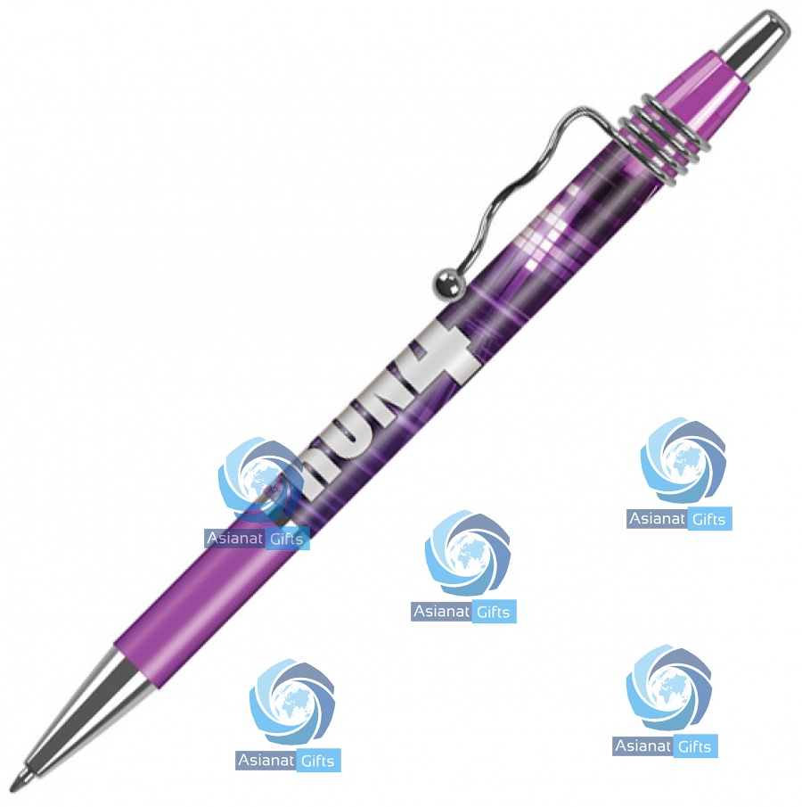 Stylish push-button ballpen with a rubberised opaque grip and chrome metal coil clip. A mix and match service is available.