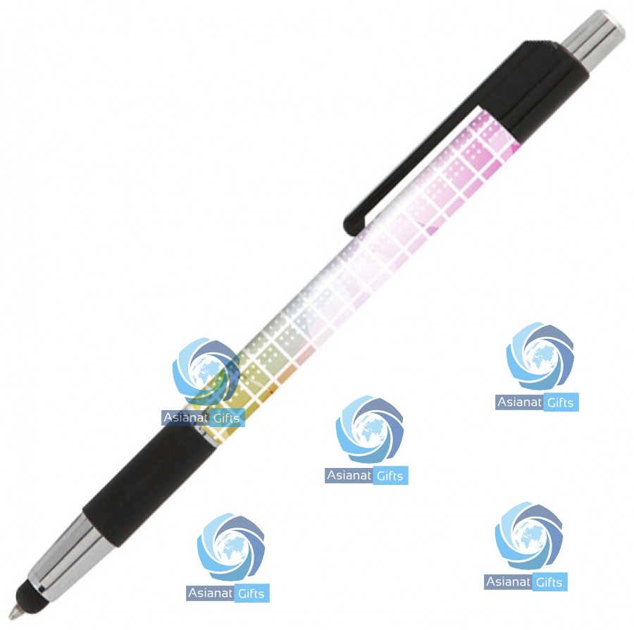 Full colour stylus pen with chrome accents. Soft silicone tip suitable for any smartphone or tablet.