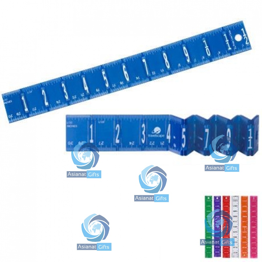 Folding Rulers have a hole for hanging up and easily fold up into a 1-1/2" square. Calibrations are in white except on the white ruler where they are black.