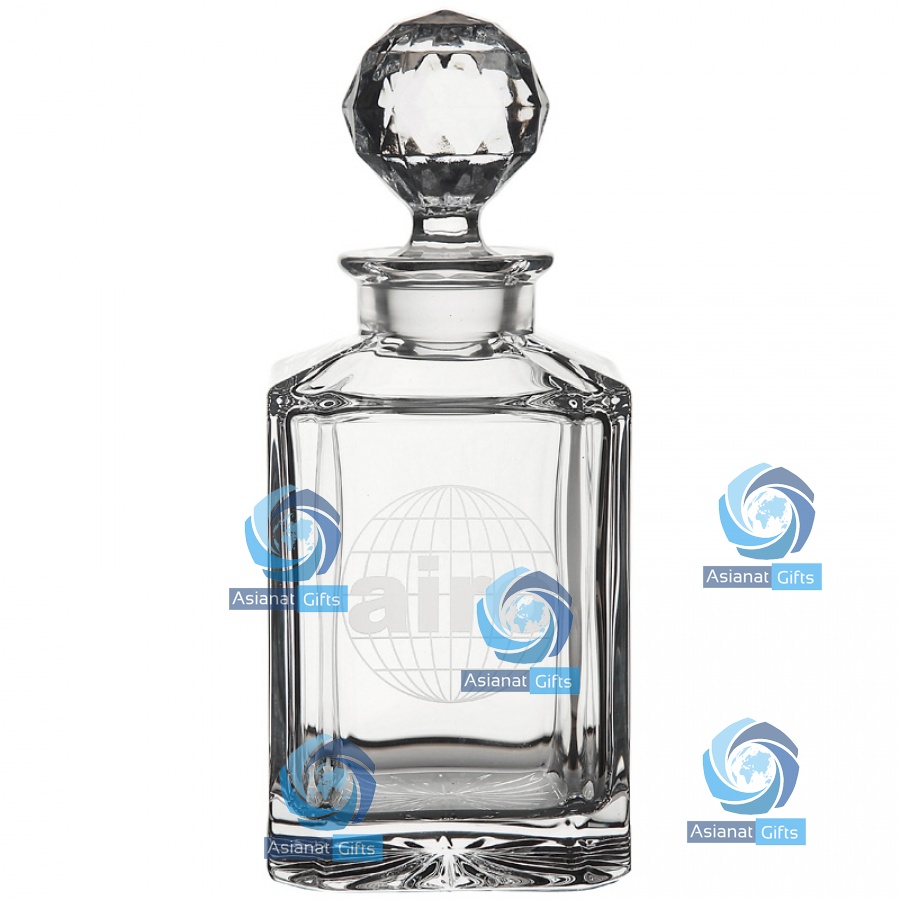 This stylish modern looking plain 0.8 liter square spirit decanter with facet stopper has a large engraving area that can be personalized with any crest, logo or wording to create a gift that is sure to take pride of place when put on display at home or at work.