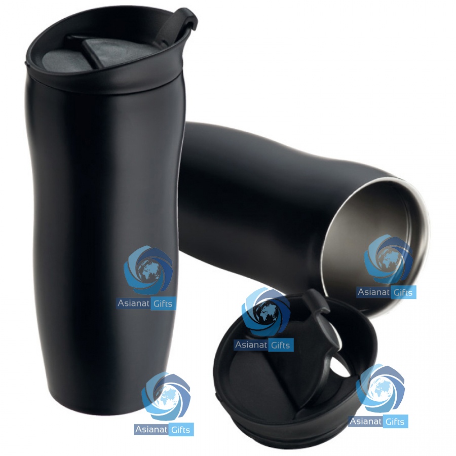 Made of sturdy aluminium. 400ml capacity. The black lacquering enhances the white-silver laser engraving of your message and logo to create a great promotional look for your brand.