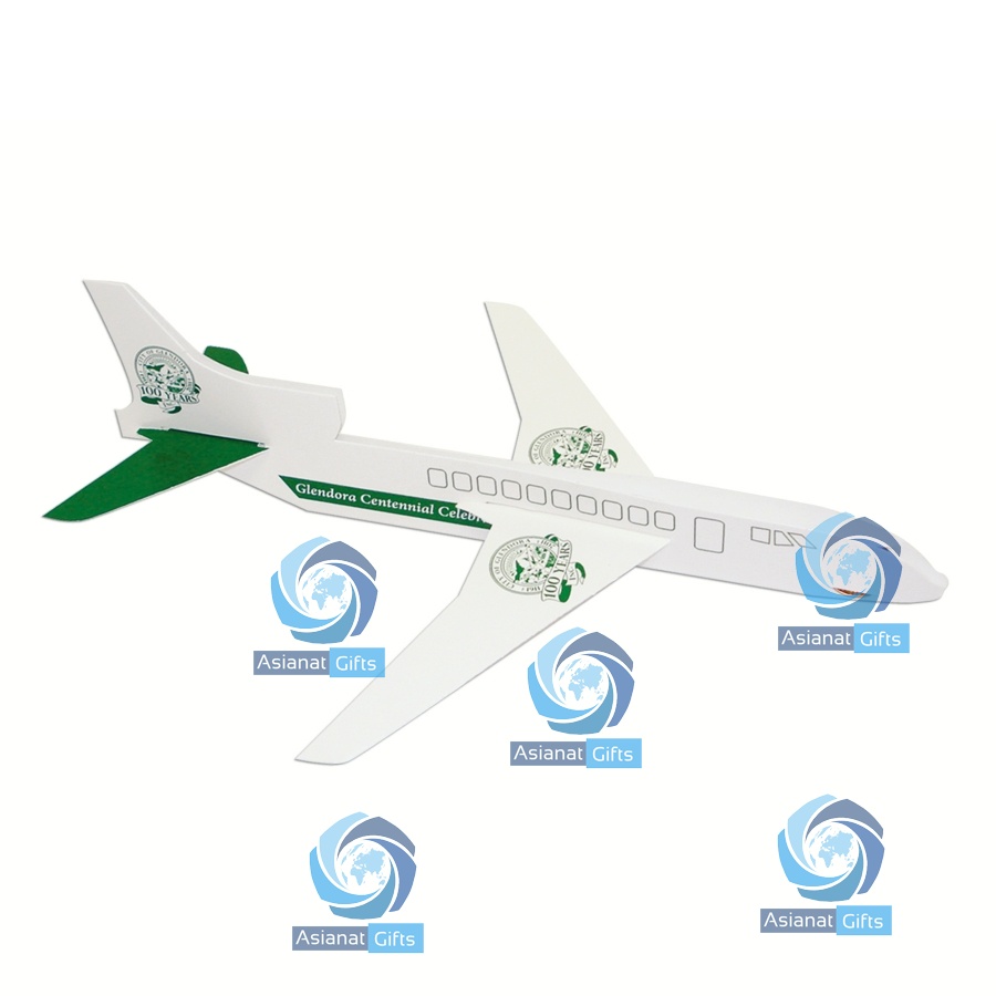 DC-10 penny paper airplane. Liquid laminated for a high gloss finish. The penny paper airplane is ideal for fairs, festivals, parades, air shows, conventions, travel agencies, marketing programs, and much more. Made from sturdy board stock or pre-creased board stock. Shipped in sheet form with assembly instructions. Quick turn, just ask. Ideal for the airplane enthusiast. A unique way to show your custom message or logo.