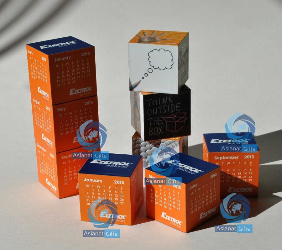Three plastic blocks with magnets on the top and bottom of each block to hold them together. The blocks can also be separated and arranged in any position you like. Each block is printed on each side with full color graphics, to display a calendar and information about your company. Great for sales meeting, trade shows, gifts, conventions and other promotions.
