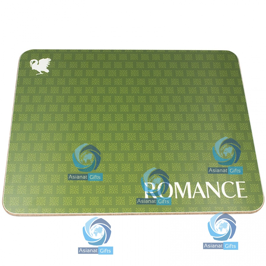 Melamine heat resistant table mat with cork or baize back. Additional print colours, boxed sets and special shapes are available.