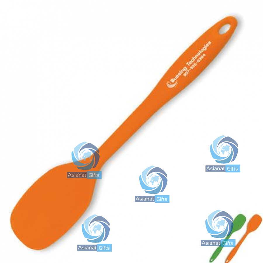All silicone spoon is a favorite in every kitchen. Available in your choice of two bright colors.Individually polybagged.