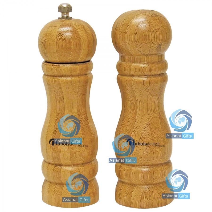 Attractive salt shaker and pepper mill gift set is made from sustainably farmed bamboo. A great complement to any table top. Set comes packaged in a retail gift box.