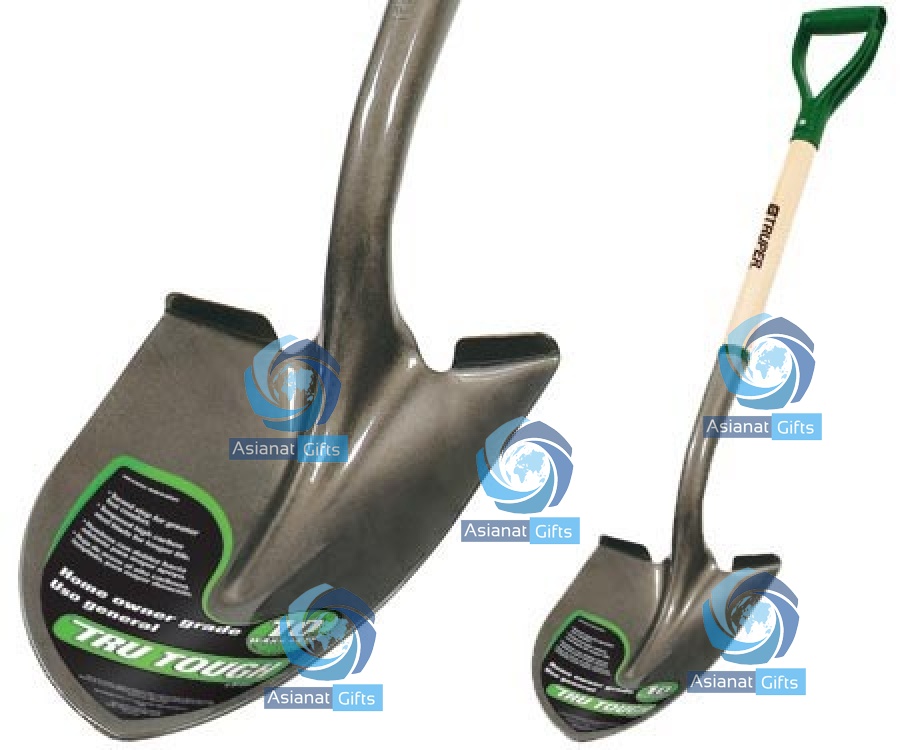 Home owner grade round point shovel with a 30 lacquered ash wood handle with a large, strong, heavy-duty D grip for maximum durability. Clear-coated grey-steel finished head and steel collar Size: 30 D handle