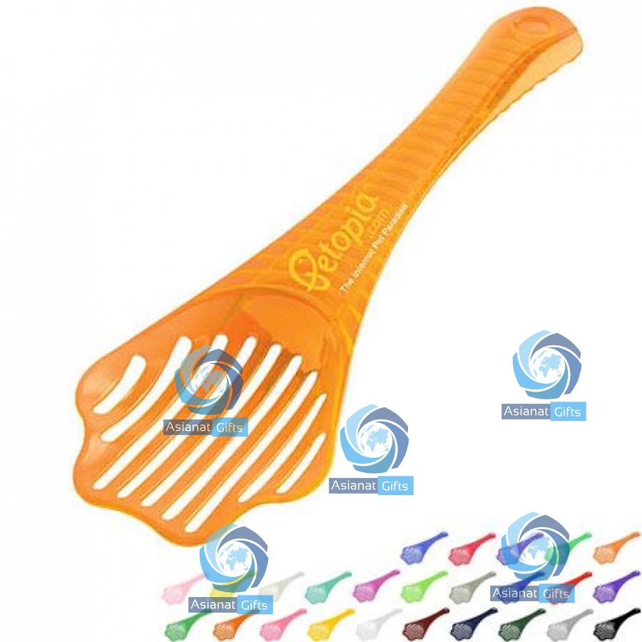 Paw shaped scoop for cleaning cat box. Sturdy construction with long handle.Ideal for pet stores, veterinarians and cat shows.Individually polybagged.