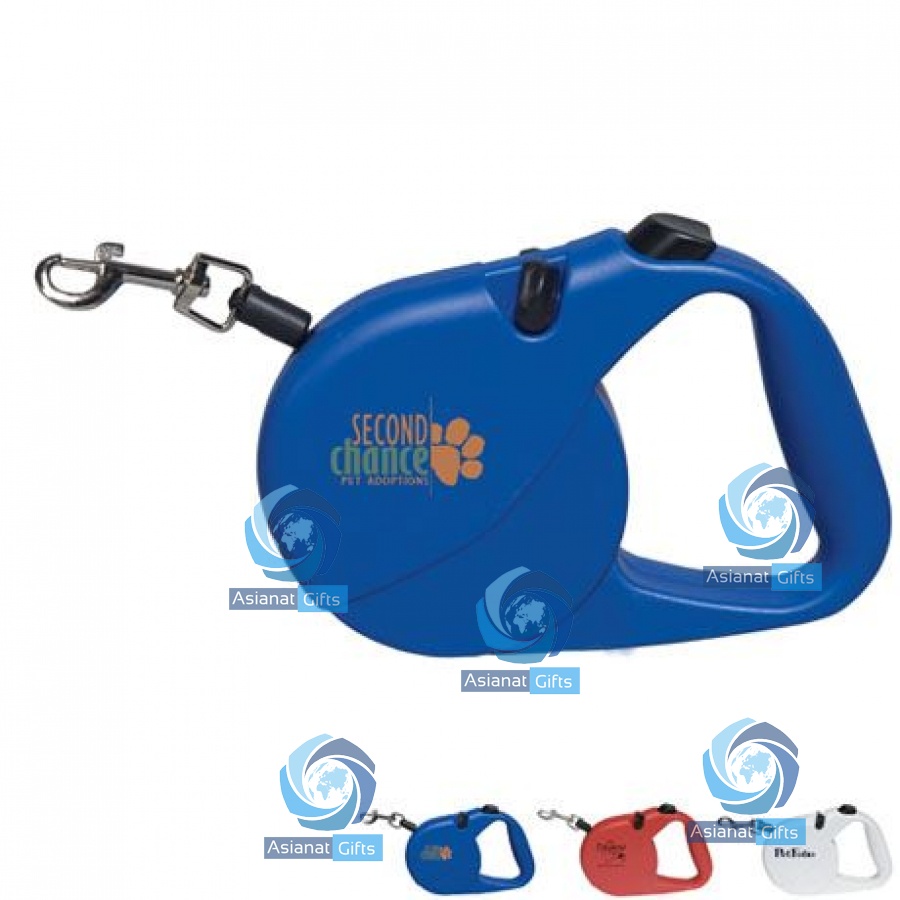A great gift for any dog owner. This leash features a push button retractable system so that you can release the leash to the length that you want and then stop it so that it does not extend any further. Push the second button and it retracts back into the handle for easy storage and carrying. Gives a generous 16 ft lead for dogs that like a little more running room. Can handle pets of up to approximately 20 lbs.Great promotion for veterinary offices, pet stores, adoption centers and more.