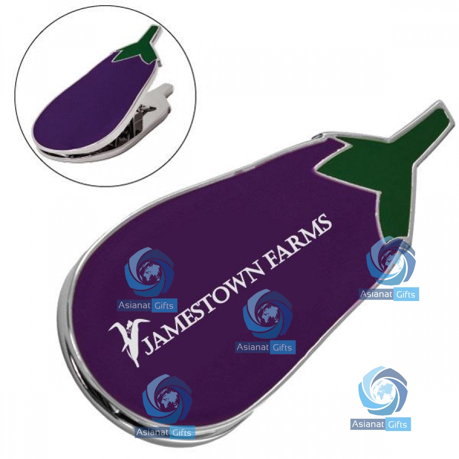 Great for promoting healthy eating and nutrition! Metal eggplant clip has a magnet on the back. Perfect for the kitchen or the office.