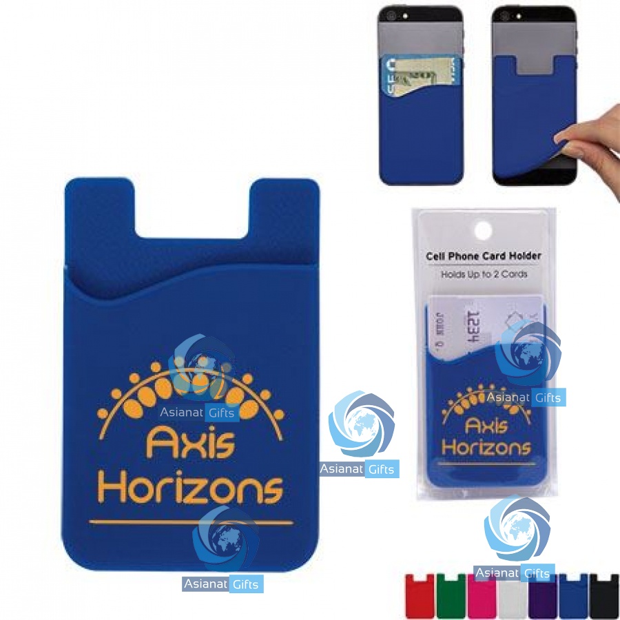 Cell phone wallet card holder adheres to the back of cell phones and holds up to 2 credit cards/IDs. Fits most phones and cases. Created with 3M™ adhesive and is removable. Made of durable silicone material.Comes in 7 cool color options. Instructions included. Comes individually packaged in retail inspired packaging.