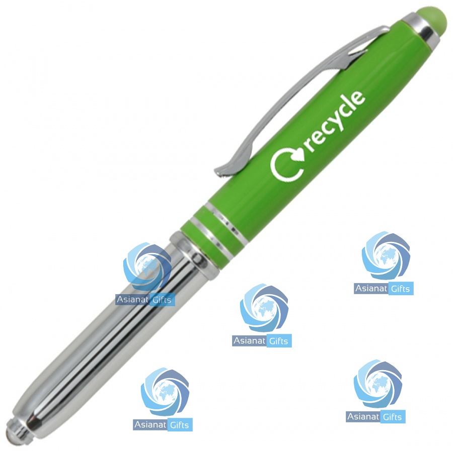 The 3-in 1 design has an LED light, a pen protected by a cap and a silicone nib suitable for use on all smartphones and tablets. Painted finish and choice of 6 vibrant colours.Black ink.