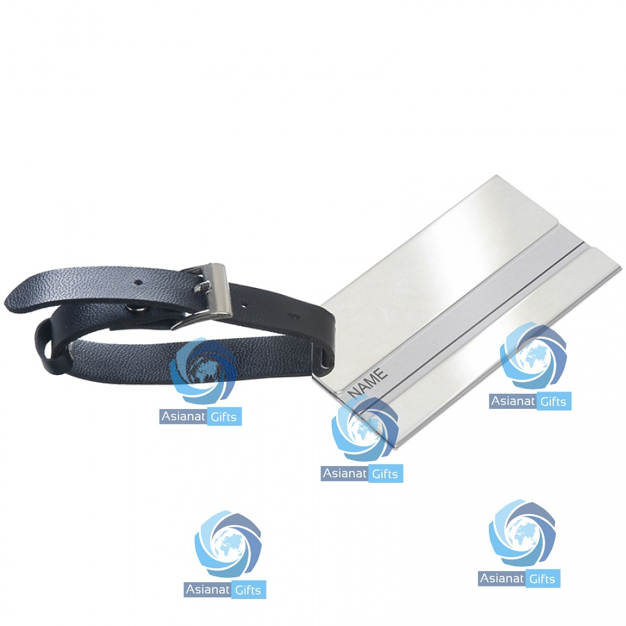 Security luggage tag with highly polished silver finish and good quality strap.