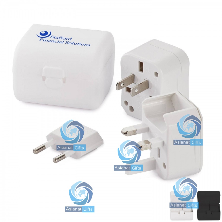 Travel adapter kit allows you to charge your electronic devices anywhere around the world. The small plastic case includes 3 AC power adapters to charge electronic devices in countries that support and input/output voltage of (Max.) 100-125V-6A and (Max.) 220-250V-3A.