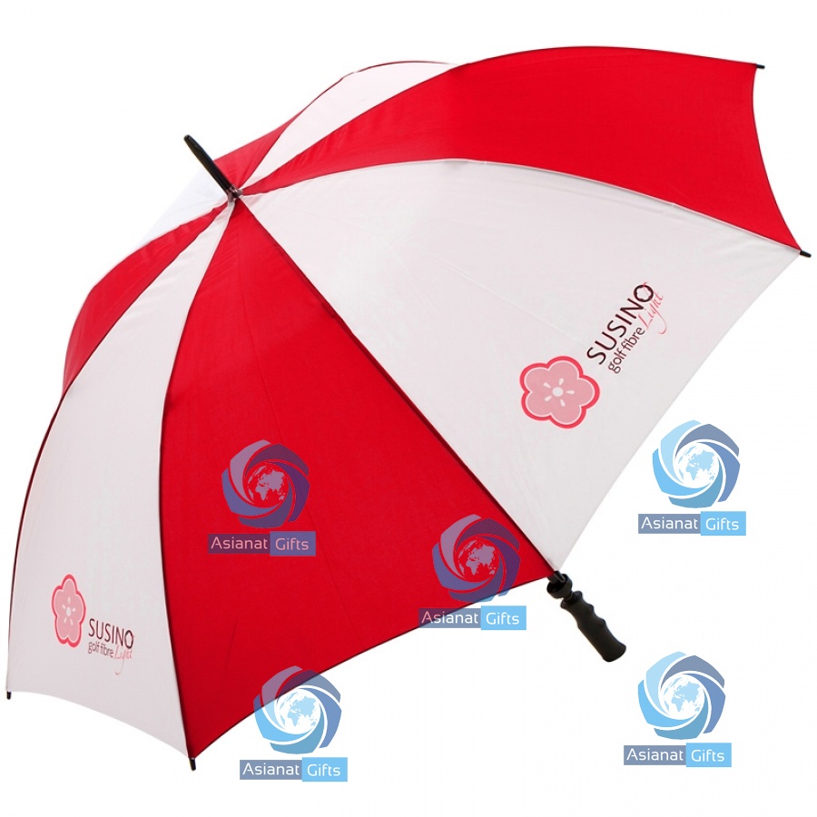 76cm, 8 rib golf umbrella. Metal frame, fibre glass solid ribs, nylon panels. Black plastic pistol grip handle.