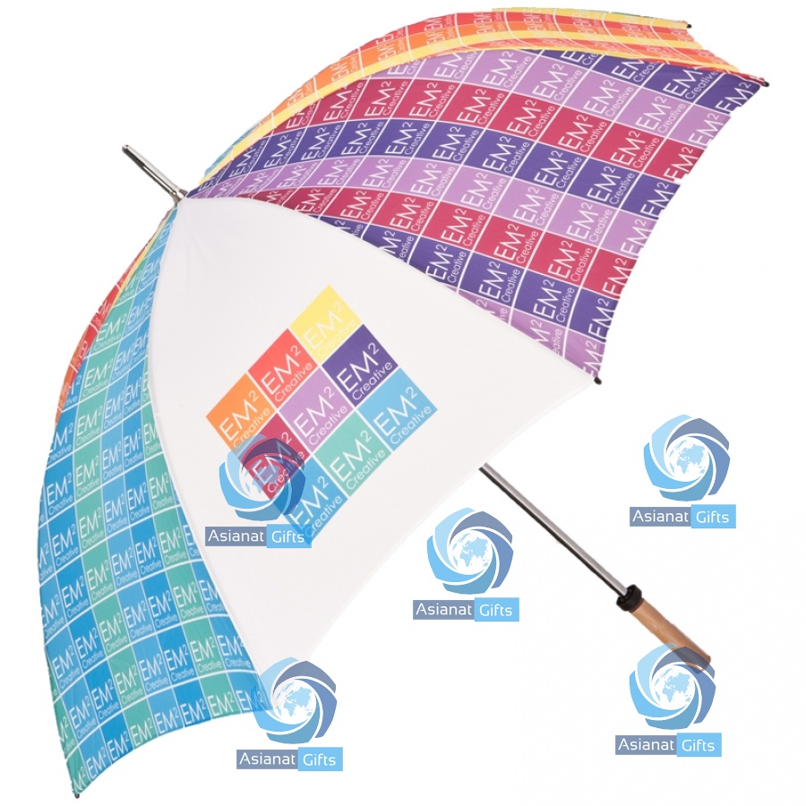 Twin rib 80cm Golf umbrella, chrome shaft and a wooden pistol grip handle. Polypropylene tip cup, polyester canopy.