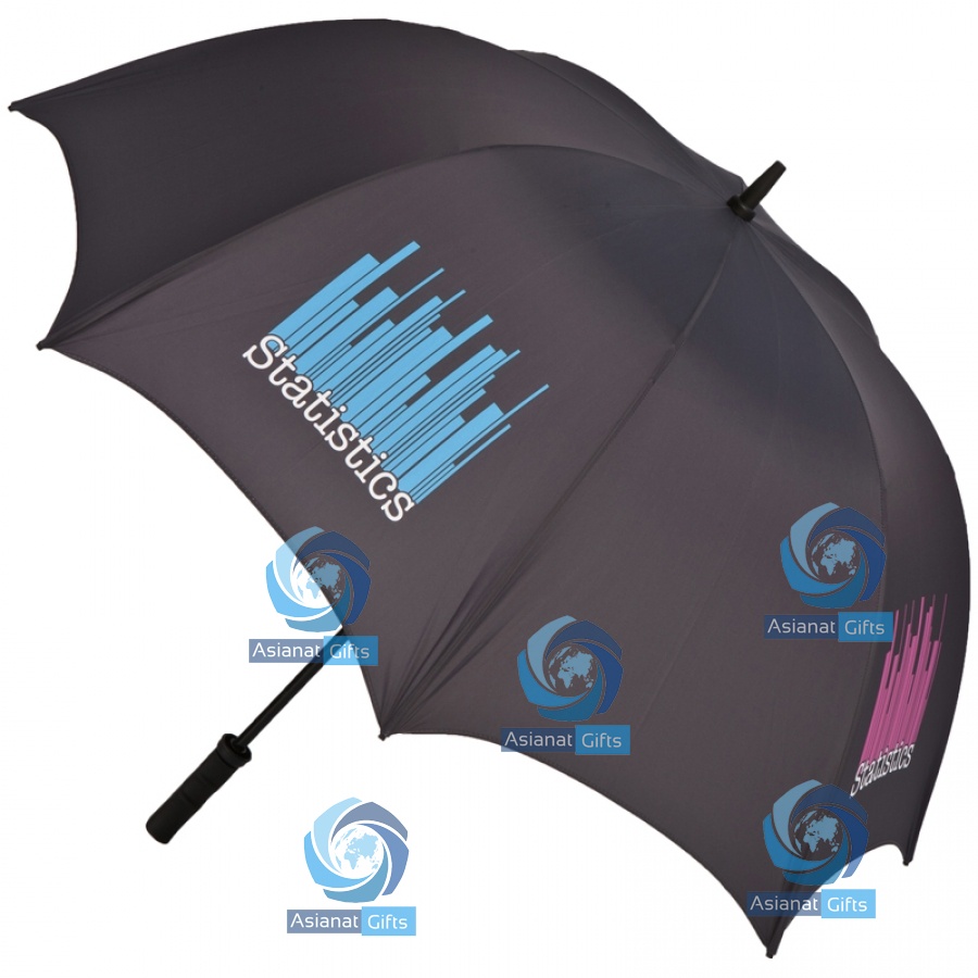 75cm rib length stormproof golf umbrella. With 14mm diameter fibreglass pole and 8 fibreglass ribs. Polyester canopy with press stud fastener. Standard soft feel pistol grip handle.