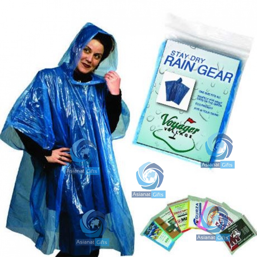 This "take-it-anywhere" poncho is perfect for events, picnics, hiking, camping, boating, travel, golf, pockets, purses and glove compartments. Reusable and recyclable poncho is lightweight and see-through. One size fits all. Poncho comes in seven assorted colors, clear, blue, green, pink, red, white and yellow, with your imprint on a custom, full color logo insert card.