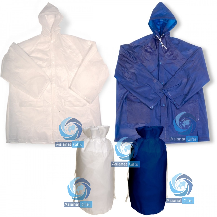 Lightweight PEVA waterproof jacket comes in a 190t nylon pouch. Jacket includes hood and side flap pockets. One size fits most. Excellent choice for sporting event promotions.